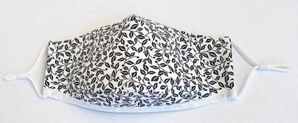 Monochrome Leaves Mask is Classic, clean and stylish. This subtle fresh-looking print from QT will transform a simple white or black outfit into a sophisticated and elegant look. Beautiful for special occasions, holidays abroad or staycations, you can keep it monochrome or add a pop of colour for added interest